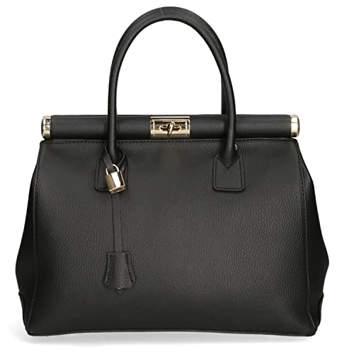 Chicca Borse Borsa Donna a Mano Pelle con Tracolla Bauletto (D28 Nero)
