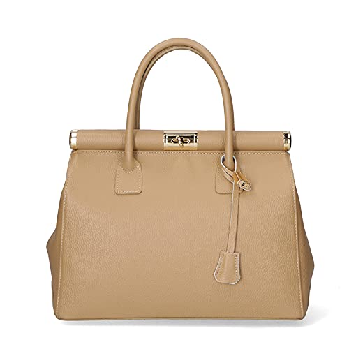 Chicca Borse Borsa top handle donna borsa a mano in pelle dollaro borsa media italiana - Nocciola