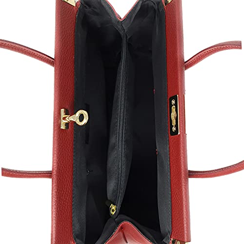 Chicca Borse Handbag Borsa a Mano da Donna con Tracolla in Vera Pelle Made in Italy 35x28x16 Cm (Rubino)