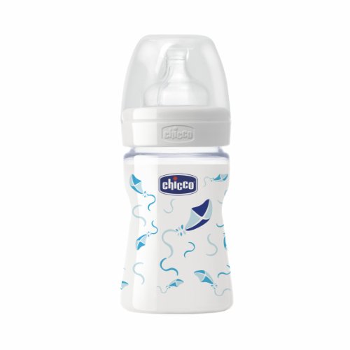 Chicco 7081121 Benessere Biberon, Flusso Normale, Silicone, Bianco/Blu, 150 ml