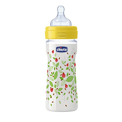 Chicco Biberon Benessere in Plastica, Tettarella in Silicone, Flusso Medio, 250 ml, Giallo