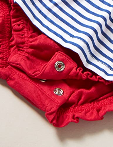 Pagliaccetto con mutandina rossa e gonna a righe bianche e blu scuro