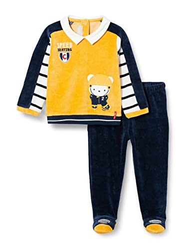Chicco Completino Maglietta e Pantaloni in Ciniglia (411) Bimbo 0-24, Blu e Giallo, 74