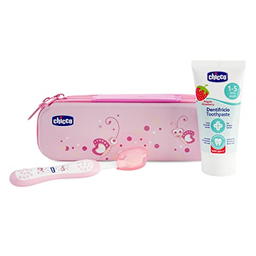 Chicco Set Dentale per Bambini, L'Astuccio Contiene Un Dentifricio 12 Mesi + e Uno Spazzolino, Rosa