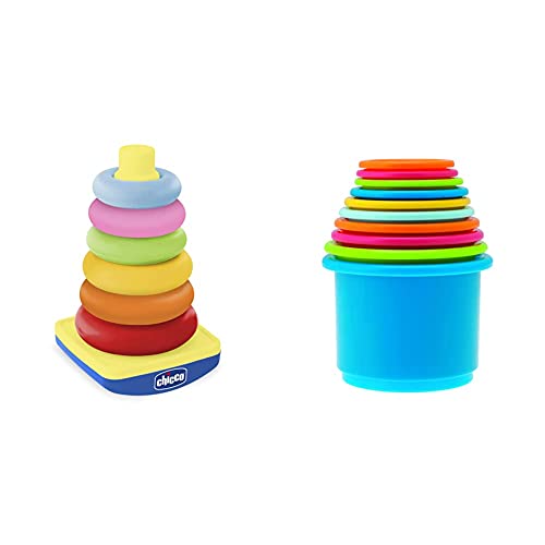 Chicco - Gioco Torre Degli Anelli, Dindolino, Impilabile, 6-36 Mesi & Gioco Tazze Impilabili, Forme Incastri, 9-36M