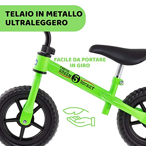 Chicco Green Rocket Bicicletta Senza Pedali, Bici Balance Bike per l'Equilibrio, con Manubrio e Sellino Regolabili, Max 25 Kg, Verde - Giochi Bambini 2-5 Anni, Taglia unica