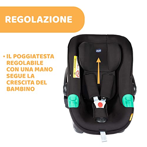 Chicco Kiros Evo i-Size, Seggiolino Auto 40-78 cm, Isofix Gruppo 0+ per Bambini da 0 a 15 Mesi, Ovetto Neonato con Cuscino Riduttore, Aggancia ai Passeggini Compatibili, Nero