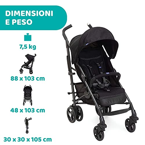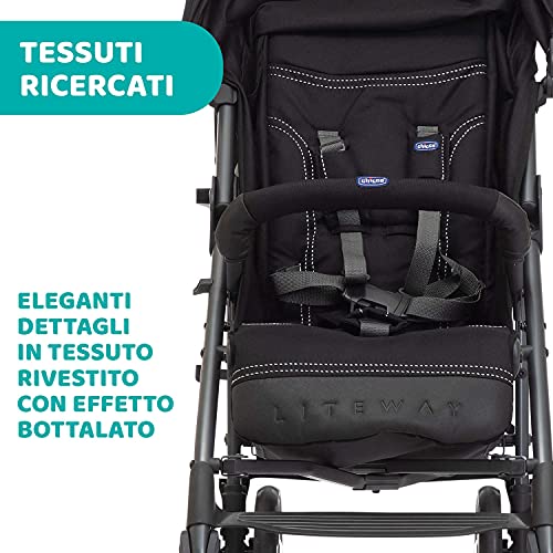 Chicco Liteway 3 Passeggino Leggero Pieghevole da 0 Mesi a 22 kg, Passeggino Reclinabile e Compatto con Manicotto Paracolpi, Posizione Nanna, Chiusura a Ombrello, Capote Trasformabile - Nero