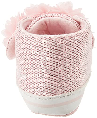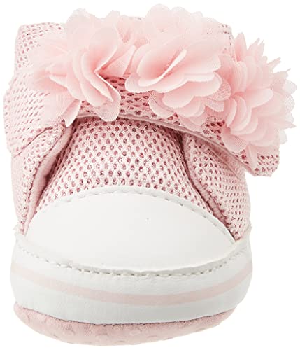 Scarpina nursery Chicco rosa in tessuto forato con fiori applicati.