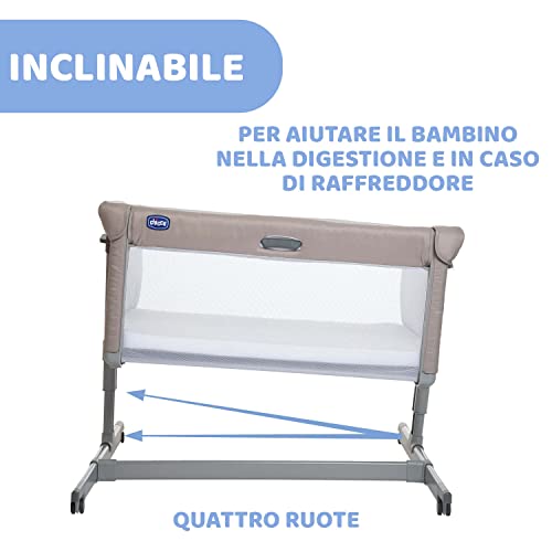Chicco Next2Me Dream Evo, Culla Neonato Fianco Letto Eco+, Inclinabile, Spondina Apribile, Altezza Regolabile, 4 Ruote, Materasso e Borsa da Viaggio Inclusi, Beige