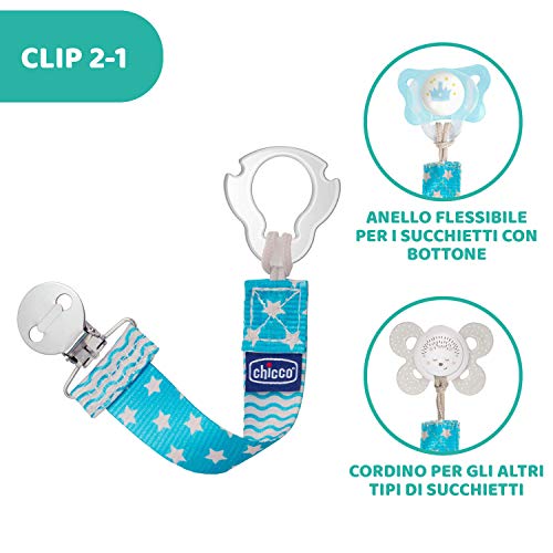 design 2 in 1 che permette di agganciare la clip ai succhietti con e senza anello