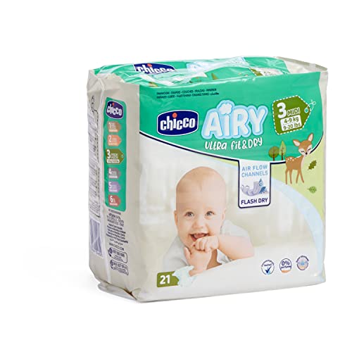 Chicco Airy Ultra Fit&Dry Midi Taglia 3 Pannolini per Bimbi 4-9 kg, 21 Pezzi