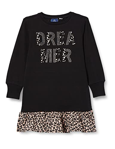 La maggior parte del vestitino è nero con scritto "dreamer" fatto con paillettes e particolari animalier