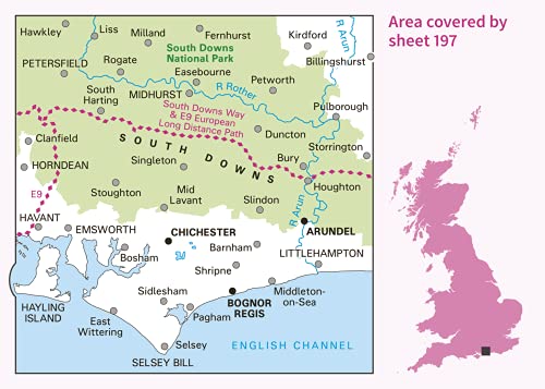 Chichester & the South Downs Map | Bognor Regis & Arundel | Ordnance Survey | OS Landranger Map 197 | England | Walks | Cycling | Days Out | Maps | Adventure