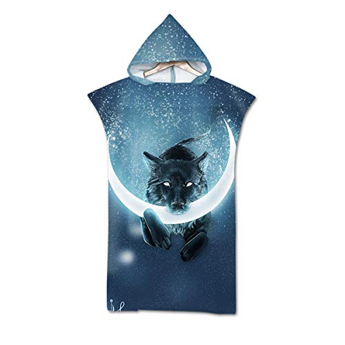 Chickwin Asciugamano per Cambiarsi Poncho con Cappuccio, Microfibra Assorbente Asciugamano Surf 3D Lupo Copricostume Accappatoio Indossare Donne Uomini per Spiaggia Nuoto (75x110cm,Cielo stellato)