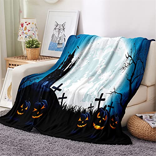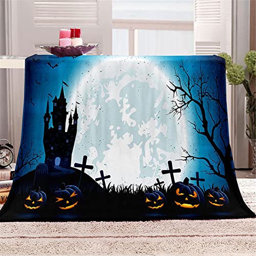 Chickwin Coperta Pile di Flanella, 3D Halloween Coperte Flanella Microfibra Morbida Singolo Matrimoniale Coperte Copriletti Comfort Calda per Divano Letto (80x120cm,Castello cimiteriale)