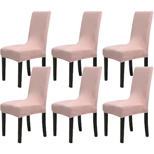 Chickwin Coprisedie con Schienale Elasticzzato, Velluto Moderno Tinta Unita Protettiva Coprisedile Sala da Pranzo Hotel Cerimonia Banchetto Lavabile Wedding Party Decor (6 Pezzi,Rosa)
