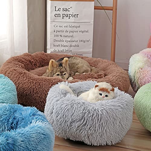 Chickwin Cuccia per Cani Cuccia per Gatti Rotonda in Caldo Peluche,Cuscino Ciambella Morbida per Cani di Piccola e Media Taglia per Cane e Gatto (Grigio Chiaro,90cm)