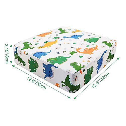 Chickwin Cuscino Rialzo da Sedia per Bambini, Smontabile Regolabile Cuscino Alzasedia per Seggioloni Cuscino Seduta per Sedia da Giardino - Comodo e Facile da Pulire (32x32x8cm,Bianco Dinosauro)