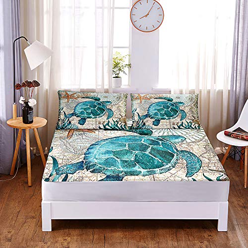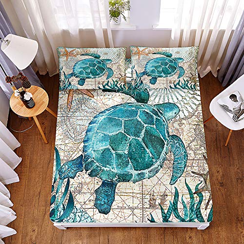 Chickwin Elastic Lenzuolo sotto con Angoli Singolo Matrimoniale, 3D Tartaruga di Mare Stampa Microfibra Lenzuolo Letto Singolo Doppio per profondità 30cm (Tartaruga di Mare,140x200x30cm)