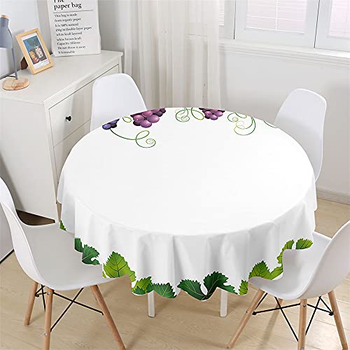 Chickwin Tovaglia Rotonda Bianca con Stampa Piante Moderne, Impermeabile, Antimacchia, Riutilizzabile, in Poliestere, Decorazione da Tavolo Rotonda per Casa Giardino (Uva,150cm)
