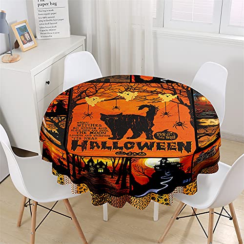 Chickwin Tovaglia Rotonda di Halloween Stampata con Zucca e Gatto Nero, Impermeabile, Antivegetativa, in Poliestere, Decorazione da Tavolo Rotonda per Casa Giardino (Festa Halloween,150cm)