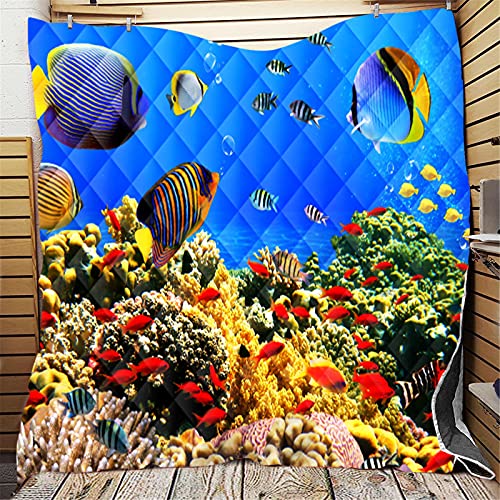 Chickwin Trapunta Copriletto Estiva, 3D Oceano Pesce Stampa Copriletti Trapuntati Trapunte Trapunta Trapuntino per Singolo Matrimoniale King e una Piazza e Mezzo (acqua di mare,96x114cm)