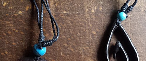 CHICNET Collana in Legno, Turchese Pietra Ciondolo Realizzato a Mano, Regolabile con Incisione Celtico Nordic Viking Maori rombo Chiaro