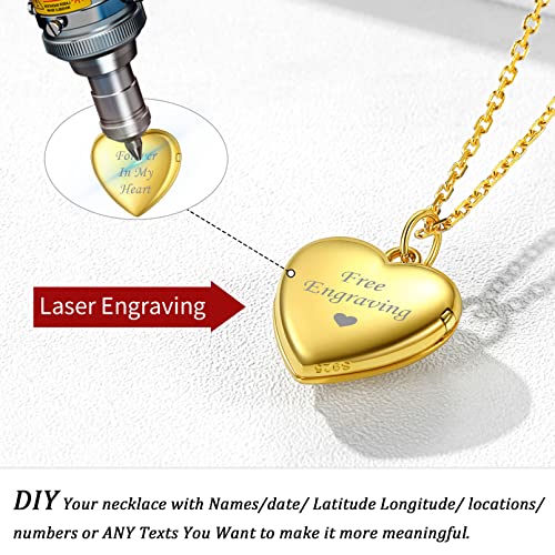 ChicSilver Collana Argento 925 Collana Portafoto Personalizzabile Incisione Oro Collana Argento Ciondolo Cuore Portafoto Collana con Cuore Portafoto