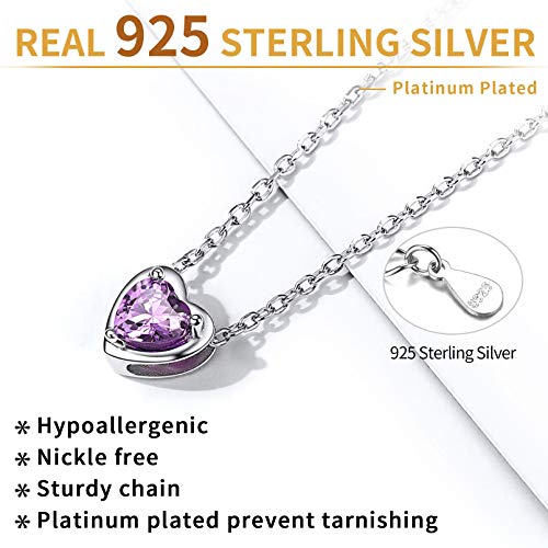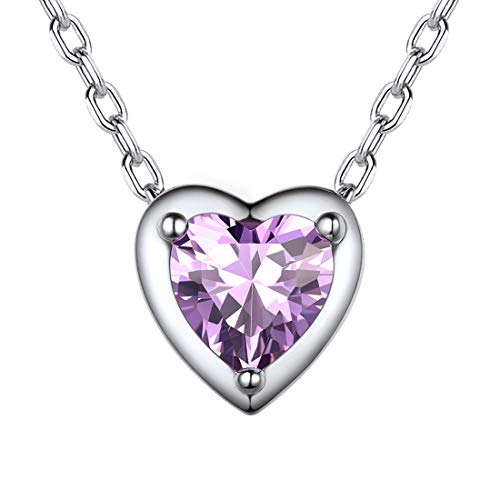 Designo: collana donna argento piccola e delicata, ciondolo a forma di cuore decorato con zirconi e pietra di nascita bellissima, gioiello portafortuna alla moda, accessorio prefetto per aggiungere un tocco di glamour al tuo outfit quotidiano.