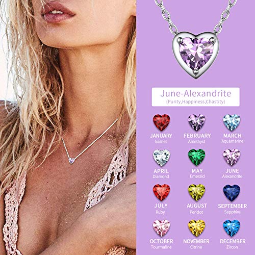 ChicSilver Collana Pendente Donna Cuore Piccolo in Argento Sterling 925 con Zirconi Brillanti Pietra Nascita 12 Mese Mesi Catenina Catena Regolabile Gioiello alla moda - Giugno