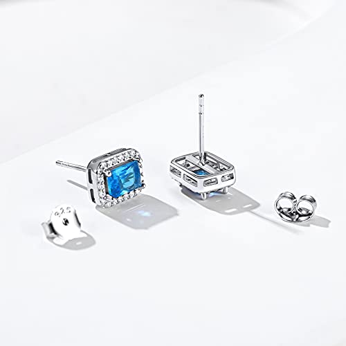 ChicSilver Orecchini Donna a Lobo Argento 925 Rettangolari Orecchini con Pietra Azzurra, Orecchini Pietra Blu Turchese Decembre Confezione Regalo