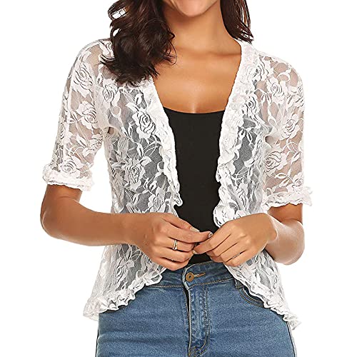 CHICTRY Cardigan Donna Cerimonia Elegante Bolero Pizzo Floreale Trasparente Coprispalla Manica Corta Giacca Shrug per Matrimonio Sposa Nuziale Partito Wedding Accessori Bianco M