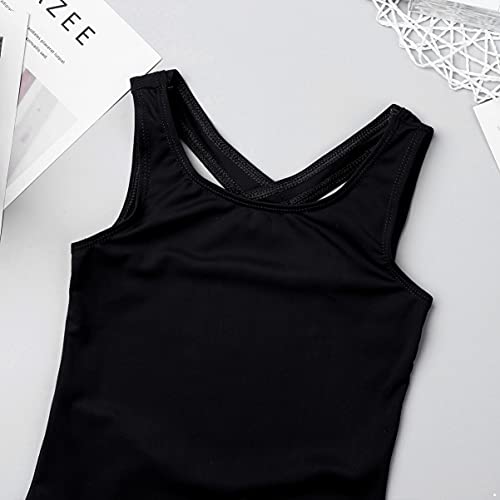 CHICTRY Body da Danza Classica Bambina Leotards Senza Manica con Strass Body da Ginnastica Artistica Ragazza Vestito Estivo da Balletto Backless Costumi di Danza Allenamento Nero A 6 Anni