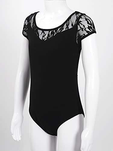 CHICTRY Body da Ginnastica Artistica Bambina Cotone Leotards Body da Balletto Bodysuit a Manica Corta Ballerina Pizzo Abito da Ballo Latino Costumi di Danza Performance Nero 6 Anni
