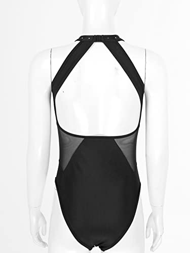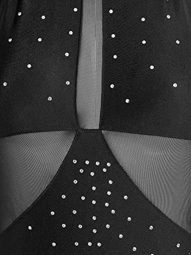 CHICTRY Body da Ginnastica Artistica Donna Strass Leotards Body da Balletto Bodysuit Senza Manica Vestito Danza Classica Abito da Ballo Latino Jazz Danza Moderna Dancewear Nero XL