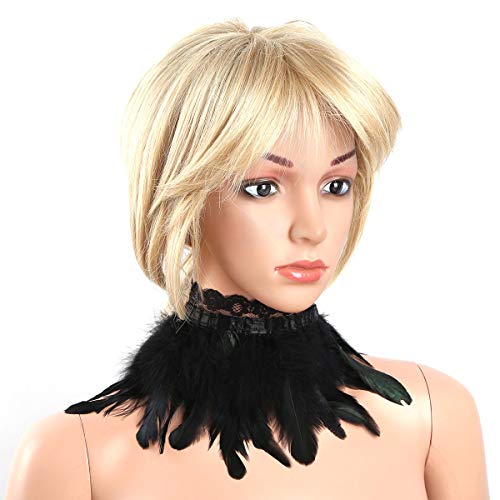 CHICTRY Scialle con Piume da Donna Collare Avvolgente Gotico Colletto Vittoriano Collo del Choker Girocollo Coprispalle Scialle a Poncho Accessori per Halloween Carnevale C Nero Taglia unica