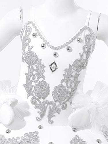 CHICTRY Vestito da Balletto Bambina Tutu da Danza Classica Elegante Swan Cigno Dancewear Vestito per Ballerina Lago dei Cigni con Fascia Abito da Ballo Pattinaggio Artistico Bianco C 13-14 Anni