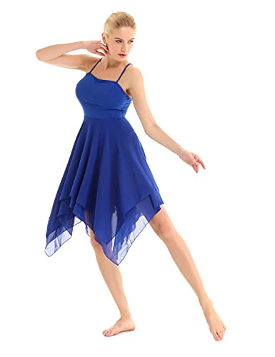 CHICTRY Vestito da Pattinaggio Artistico Donna Body da Balletto Danza Classica con Strass Glitter Backless Incrociata Leotard Senza Manica Abito da Ballo Ritimica Latino Blu B XXL
