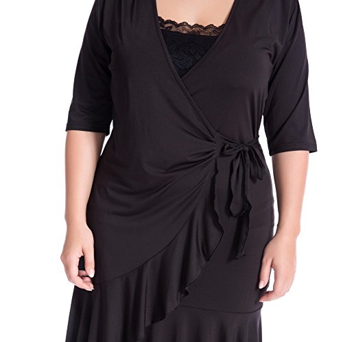 Chicwe Donna Taglie Forti Capriccio Solido Vestito Avvolgere Wrap Dress - Lunghezza del Ginocchio Casual Festa Cocktail Vestito Nero 4X