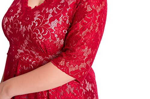 Chicwe Donna Taglie Forti Foderata Tunic Top V Collo Blusa Camicetta di Pizzo Floreale - Festa e Casual Top