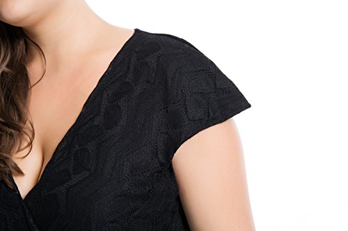 Chicwe Donna Taglie Forti Foderato Solido Pizzo Vestito con Crossover V Collo - Lunghezza del Ginocchio Vestito da Lavoro e Casual