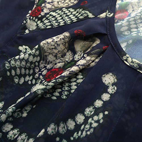 Chicwe Donna Taglie Forti Stampato Floreale Camicetta Camicia Top con Pieghe del Collo - Blusa da Lavoro e Casual