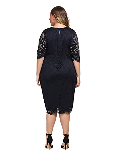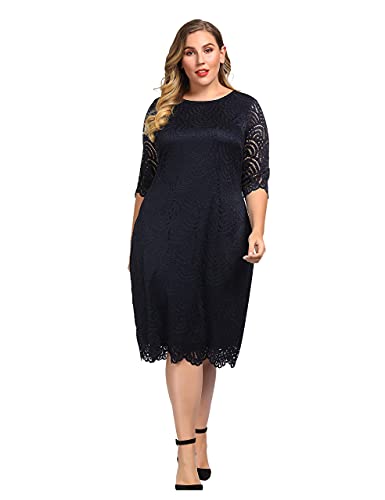 Chicwe Donna Taglie Forti Vestiti Dritti Foderato Elasticizzato Pizzo Vestito con Orlo e Polsini Smerlati