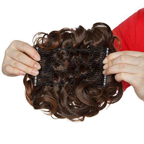 SEGO Chignon Capelli Finti Ricci Clip Extension Updo Pettini Hair Magic Elastico Bun & Coda di Cavallo Accessori da Donna 90g - Castano Cioccolato ombre Castano Ramato Chiaro