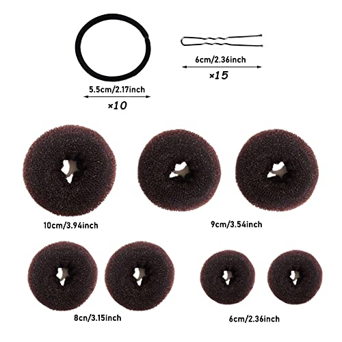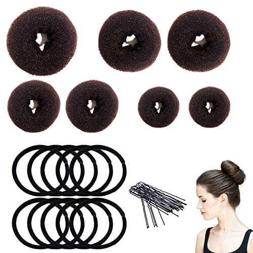 Chignon a Ciambella, Set di Chignon, 7 Pezzi Ciambella per Chignon, Chignon Materiale Accessori, Realizzare Chignon Set, Creatore per Pane Ciambella, con 10 Elastici per Capelli e 20 Clip