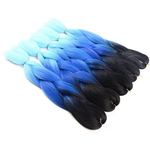 Chiguo 1 Pezzi Jumbo Treccia Hair Extensions di Capelli Sintetici African 24'' / 60cm Colore Sfumato Intrecciare i Capelli Parrucca Braid (Nero-Profondo Blu-Azzurro)