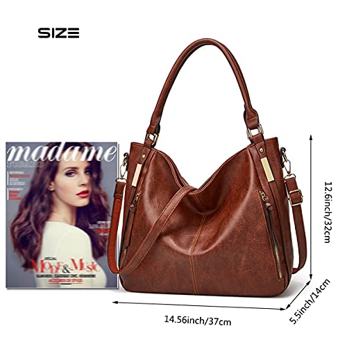 1 - [Quality Material]: Anti-Scratch PU Leather Hobo Purse, soft hand feel and durable, connects with beautiful gold hardware.Top zipper closure. Bottom U-shaped sewing design.
