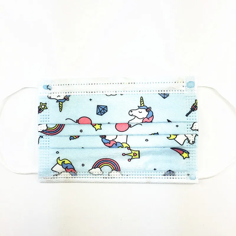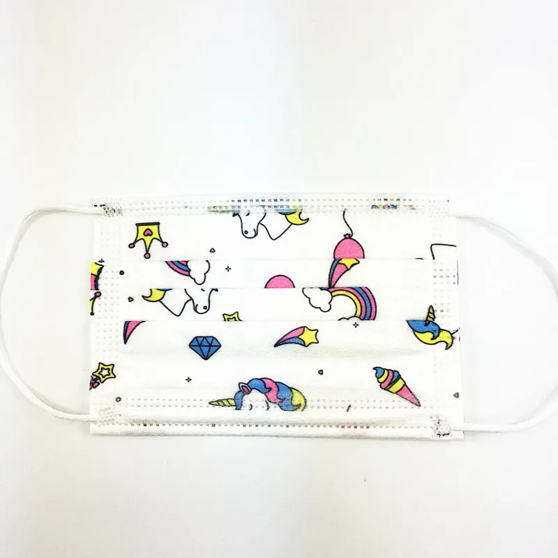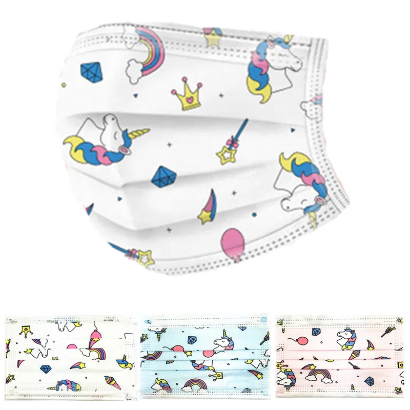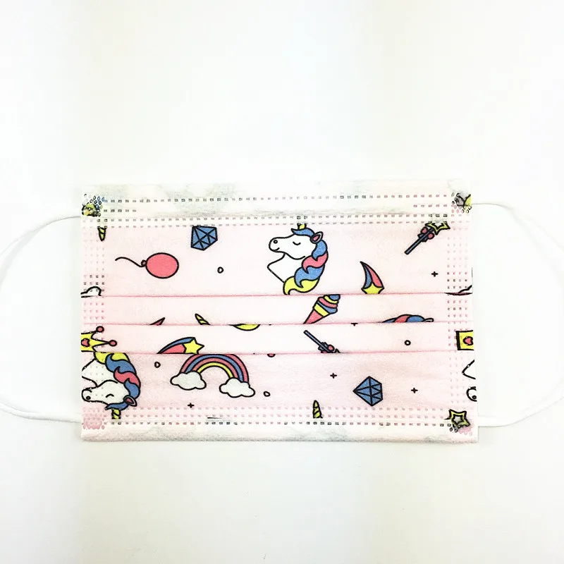 Child Kids Adults Disposable Face Masks 3 Layer Unicorn Prints Cartoon Mask Anti-Dust Protective Mask Pink Girl Mouth Cover
