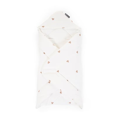 Una morbida e calda coperta con cappuccio in cotone jersey di alta qualità, decorata con cuori di tendenza. Dettagli del prodotto: Cappuccio protettivo Con chiusura in velcro Certificato secondo Oeko-Tex Standard 100 Dettagli tecnici: Design: cuori Materiale: 100% cotone Materiale di riempimento: 100% poliestere Dimensioni: larghezza x lunghezza x altezza 75 x 75 x 2 cm Istruzioni per la cura: Lavabile a 30 °C Non adatto all'asciugatura in asciugatrice